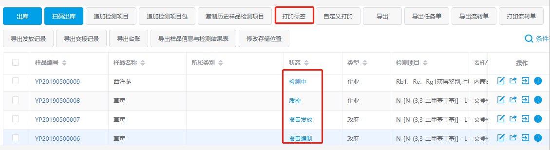 3. P.T LIMS中樣品編號(hào)的唯一性防止樣品混淆,根據(jù)樣品編號(hào)可在系統(tǒng)中實(shí)時(shí)查看樣品的狀態(tài),方便查詢和管理,并且顯示樣品所在環(huán)節(jié)和操作人員。同時(shí)支持樣品標(biāo)簽的管理,且于樣品編號(hào)一一對(duì)應(yīng)。