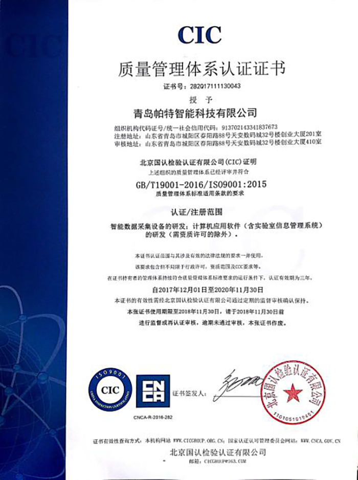 青島帕特智能科技有限公司把質量之根深植于企業(yè)發(fā)展全過程,把誠信之本貫穿于生產經(jīng)營的各個環(huán)節(jié),未來,我們將以繼續(xù)發(fā)揚文明誠信的工作作風,全心全意為檢驗檢測產業(yè)服務......