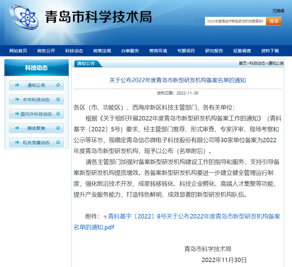 為推動(dòng)青島市新型研發(fā)機(jī)構(gòu)健康有序發(fā)展,青島市科技局主導(dǎo)、組織開展了“2022年度青島市新型研發(fā)機(jī)構(gòu)”備案申報(bào)工作。近日,經(jīng)主管部門推薦、形式審查、專家評(píng)審、現(xiàn)場考察和公示等環(huán)節(jié),確定了30家單位備案為“2022年度青島市新型研發(fā)機(jī)構(gòu)”,青島帕特智能科技有限公司成功入選!